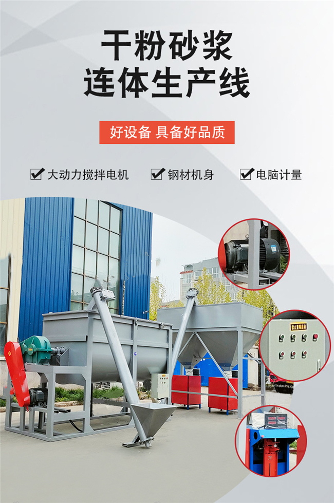 4、操作簡單:該設備無需基礎即可安裝,具有占地面積小、操作簡單、能耗低、產量高等優(yōu)點??捎糜谏a玻化微珠保溫砂漿、聚苯顆粒保溫砂漿和各種外墻特種保溫砂漿。